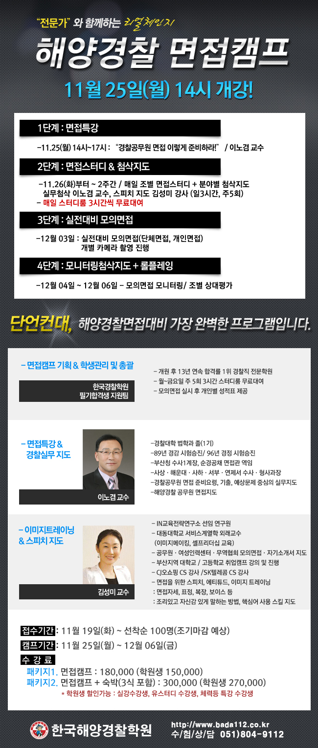 [면접시험] 해양경찰공무원 면접캠프11/25 (월) 개강