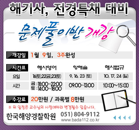 해기사 전경특채반 문제풀이 개강일정 안내입니다.