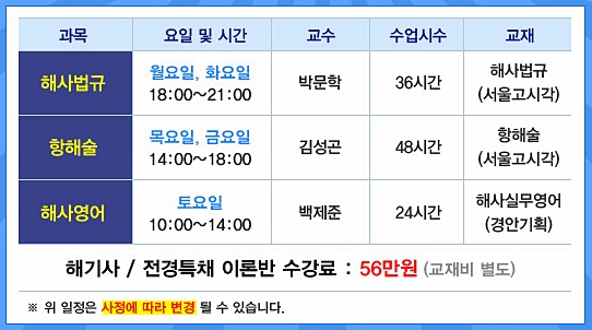 1월 '해기사/전경 특채대비반' 개강에 대해 알려드립니다.