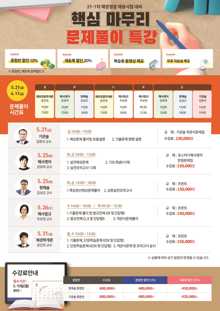 21-1차 해양경찰 채용대비 핵심특강 문제풀이 개강합니다!