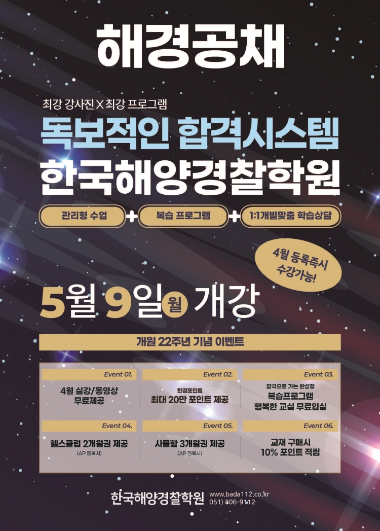 22년하반기시험대비 해경공채합격반 5/9(월)개강